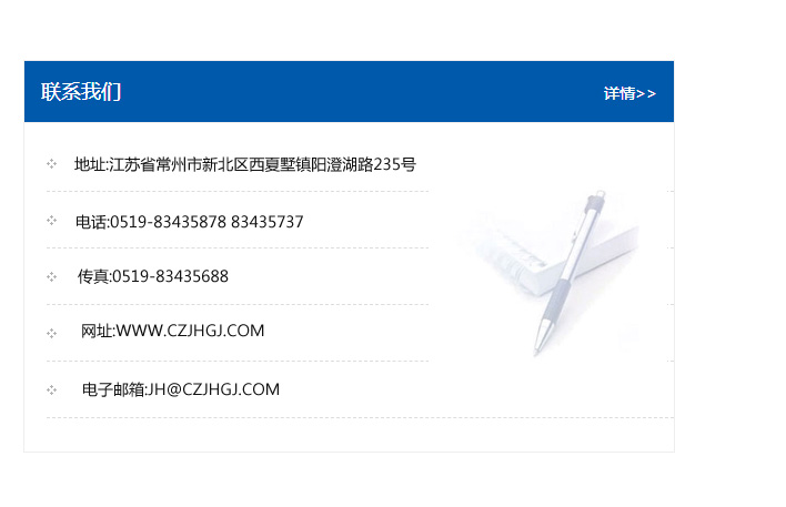 地址:常州市新北區友邦商務大廈1幢16、17層  電話:0519-85101652  傳真:0519-85112595  郵編:213022  網址:www_cz-jiayue_cn.qsxysy.com  郵箱:xiajifengaa@163.com